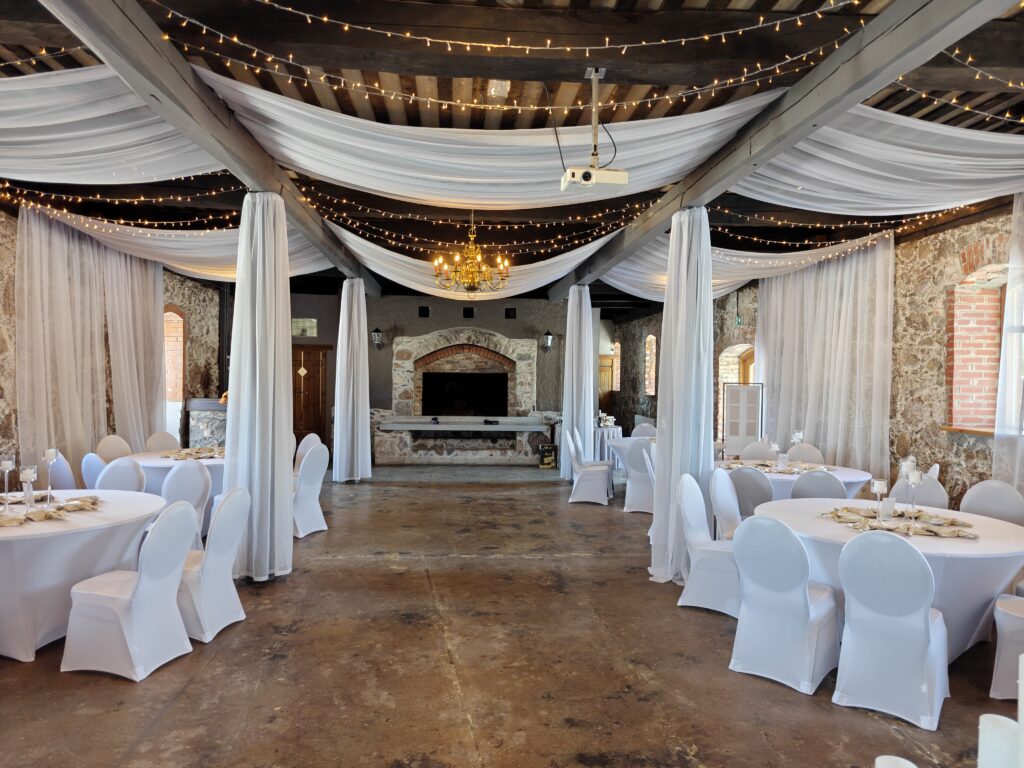 Saal võimaldab korraldada nii piduliku banketi kui ka tantsuõhtu, säilitades avara ja elegantse ilme. Maakivist detailid ja kamina soe atmosfäär loovad pulmapäevale erilise meeleolu.